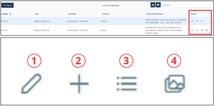 ⚠️Certifique-se de que está na subseção de “Ações” e não de “Cadastro”, pois ambas possuem a opção “Contratos”.