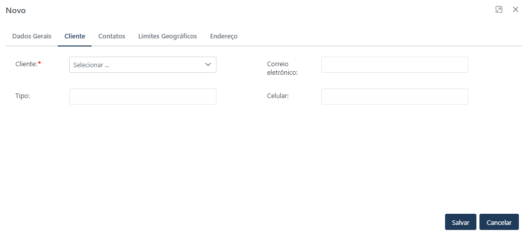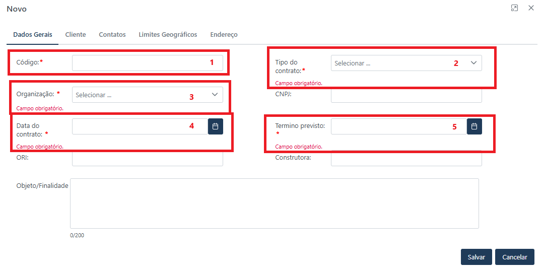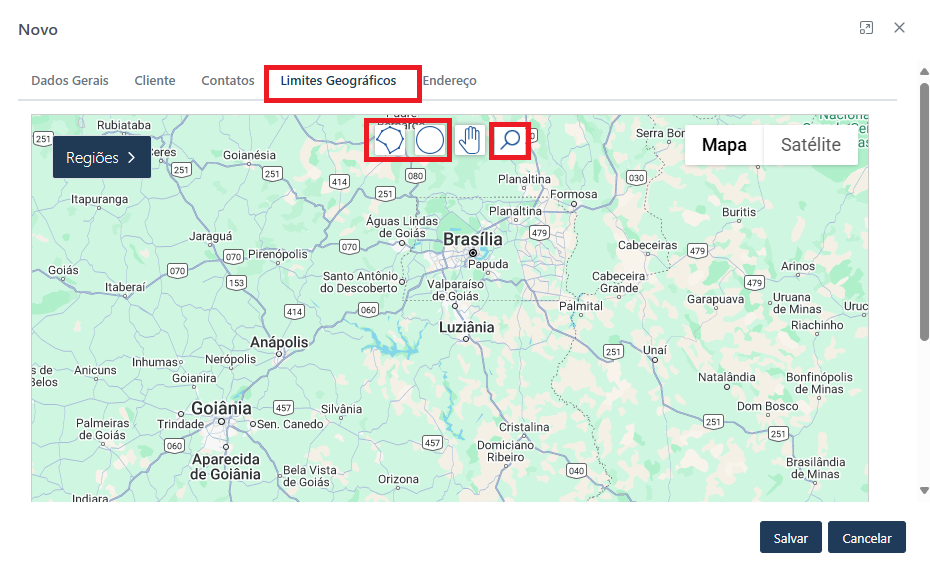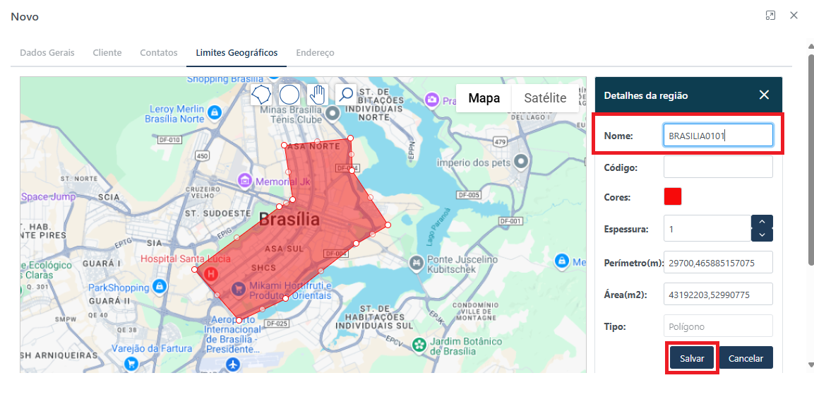 Nesta aba, você irá delimitar a área geográfica relacionada ao contrato.
