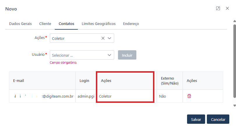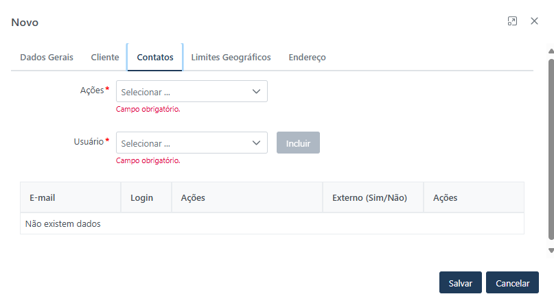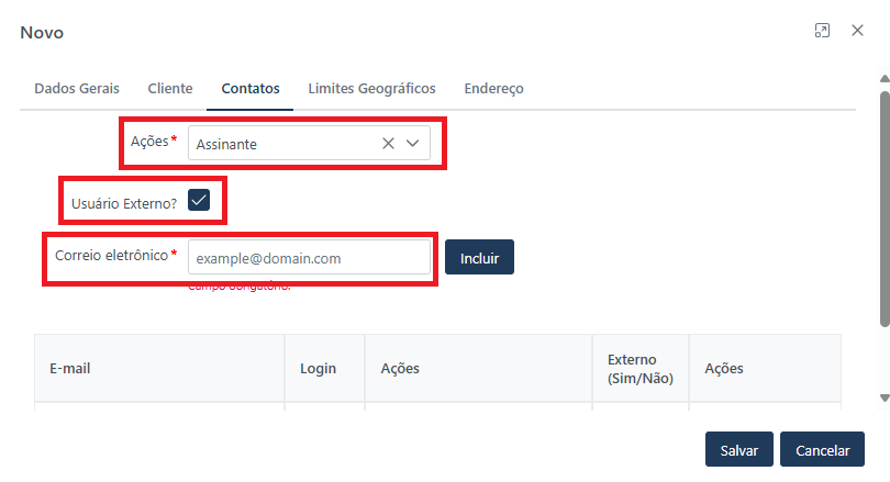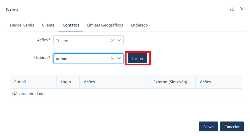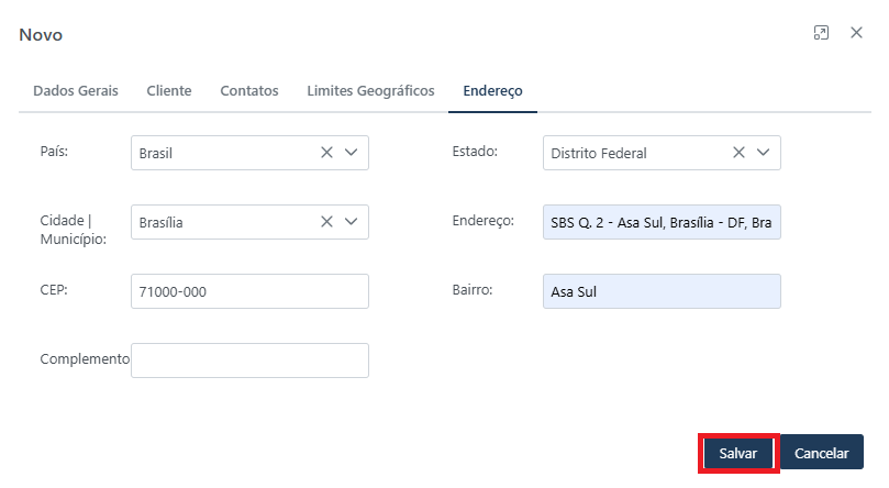 - Após o preenchimento de todos os campos obrigatórios, clique em "Salvar".