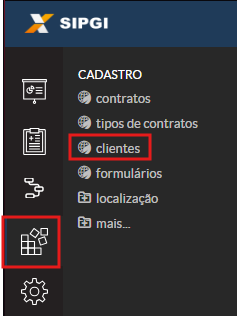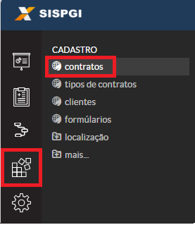 Acesse no menu lateral a opção:CADASTRO > CONTRATOS
