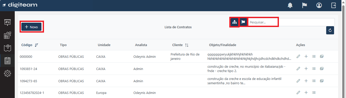 Utilizar a barra de busca (3) para localizar contratos específicos;