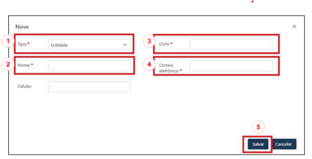 - Clique em 💾 Salvar (5) para concluir o cadastro.