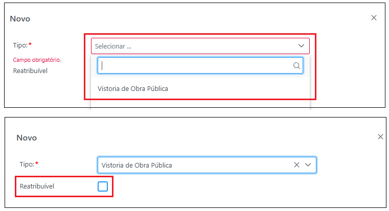 - Escolha o TIPO DE FLUXO e defina se ele pode ser reatribuĆdo.