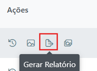 Em ambas as telas são exibidos alguns dados gerais sobre o determinado fluxo (como ID, TIPO, STATUS, etc.) e as AÇÕES possíveis. Na coluna AÇÕES é possível visualizar a opção GERAR RELATÓRIO.