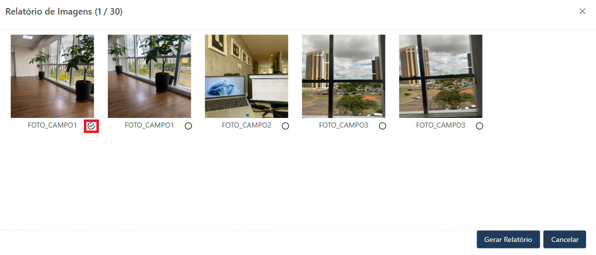 Ao selecionar essa opção, é possível selecionar até 30 imagens relacionadas ao fluxo de trabalho para geração de um documento PDF.