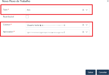 Aprovador | O usuário responsável por aceitar ou rejeitar as informações coletadas |