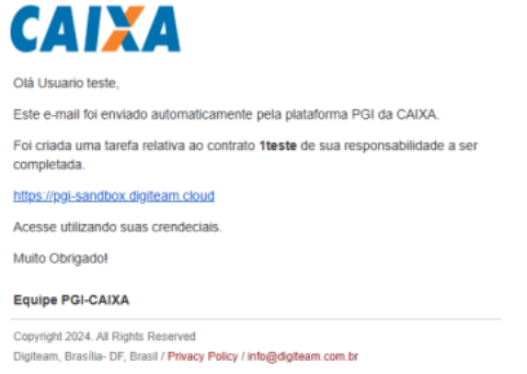 Se tiver qualquer dúvida sobre o preenchimento ou sobre o andamento da sua tarefa, verifique as notificações no seu e-mail e as pendências na tela de tarefas do Digiteam PGI.