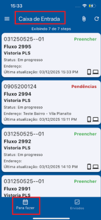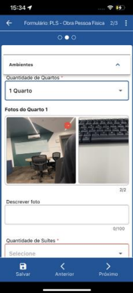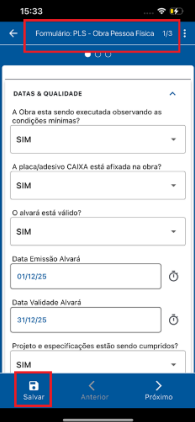 Ação do Coletor: Abre a tarefa pendente e preenche o formulário da PLS, capturando as imagens necessárias no momento do preenchimento. Lembre-se, o formulário pode ser salvo, mas só avança após o envio.