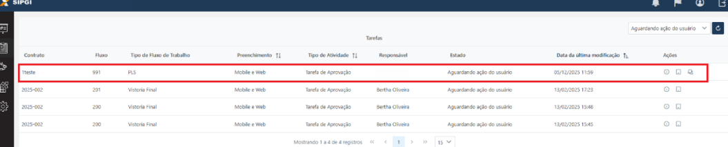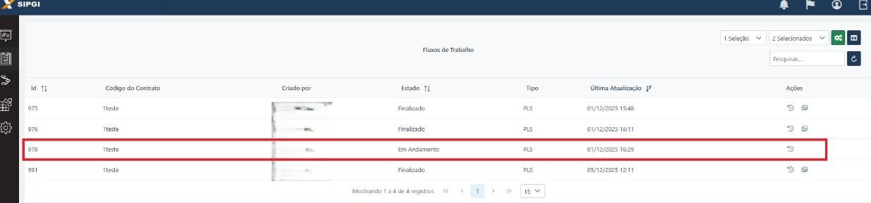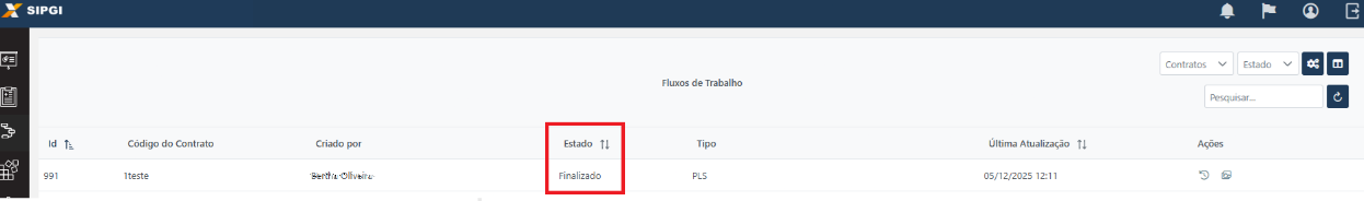 Validade do Fluxo: Cada fluxo de trabalho tem uma validade de 30 dias. Após este período, ele expira e a data de execução da PLS é considerada a data de finalização do fluxo.