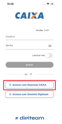 O Coletor (Responsável Técnico), acessa o aplicativo móvel do Digiteam PGI com autenticação SSO e abre a Caixa de Entrada com as tarefas a fazer.